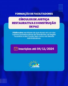 O curso de Formação de Facilitadores em Círculos de Justiça Restaurativa e Construção de Paz visa formar profissionais para conduzir situações conflitivas, não-conflitivas presentes no ambiente laborativo, visando o fortalecimento de vínculos da comunidade socioeducativa.