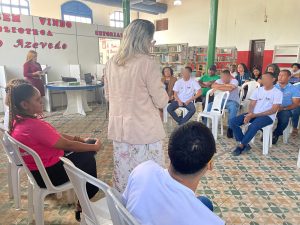 A ação foi realizada na unidade do Iema do Anil (antigo Cintra) e contou com a participação da presidente da Funac, Sorimar Sabóia, além de Patrícia Bertoldo, da Asplan do Iema (representando a diretora Geral, Cricielle Muniz), e Neuza Ribeiro, coordenadora de Projetos do Instituto Mariana, que ministrou o bate-papo sobre Educação e Formação Profissional como Ferramenta de Transformação Social. Também estiveram presentes a diretora Técnica (Dirtec/Funac), Lúcia Diniz, bem como vice-diretores e coordenadores de Centros Socioeducativos, além de socioeducandos.