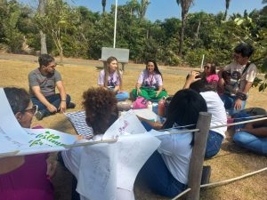 Pela manhã, no Parque Estadual do Sítio do Rangedor, adolescentes do Centro Socioeducativo Florescer participaram de uma roda de conversa sobre a Lei Maria da Penha. A iniciativa está inserida no conjunto de ações da campanha Agosto Lilás – Feminicídio Zero: nenhuma violência deverá ser tolerada, desenvolvida pelo Governo do Estado. “É fundamental engajar os socioeducandos neste processo, para que eles entendam que a violência contra a mulher vai além da conduta que ofenda a integridade ou saúde corporal da mulher. Inclui, ainda, violência psicológica, sexual, patrimonial e moral. Tudo isso se constitui em crime”, explica a presidente da Funac, Sorimar Sabóia.