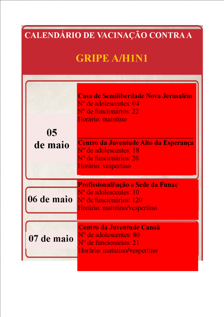 Adolescentes e servidores da Funac serão imunizados contra gripe A/H1N1
