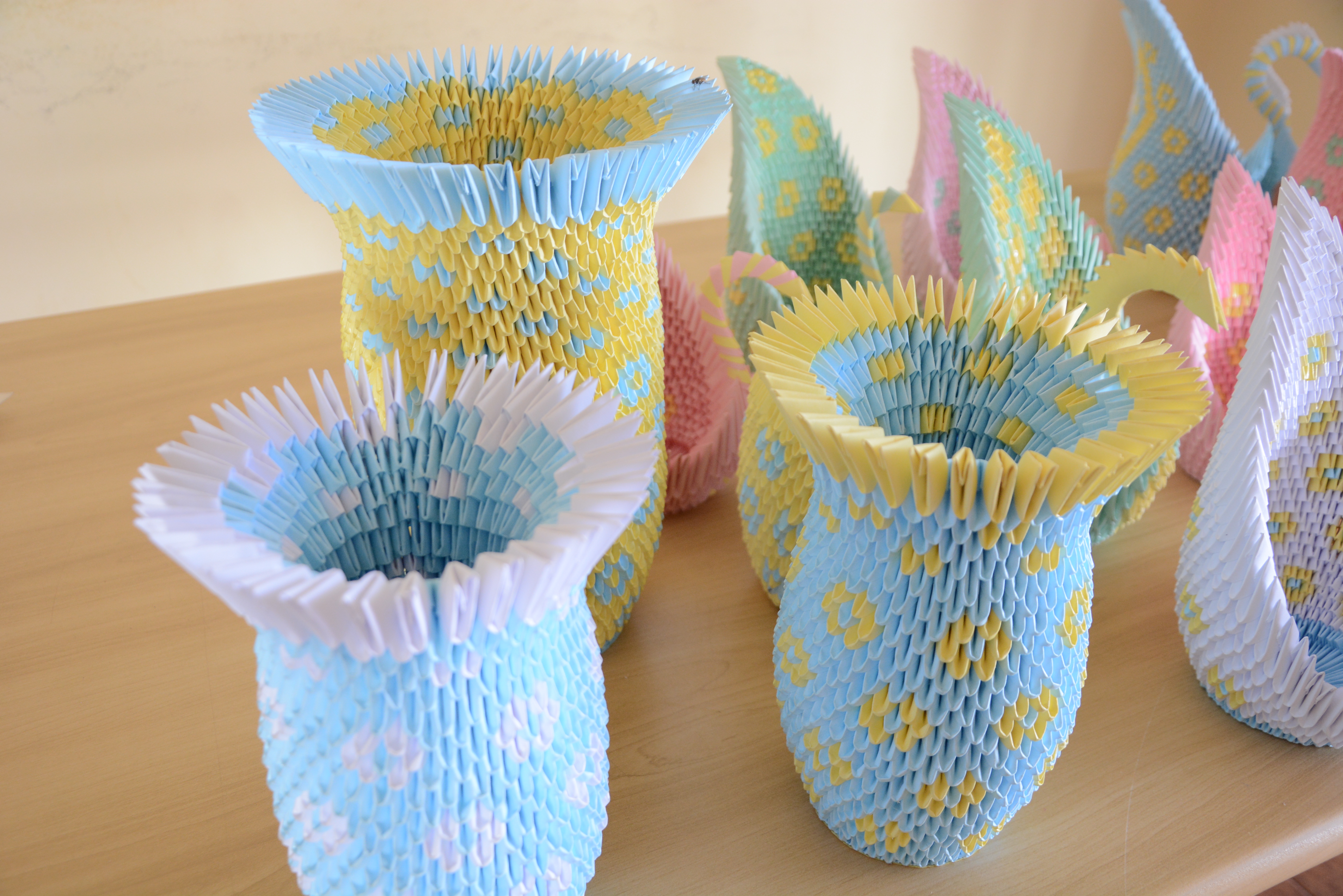 O material confeccionado são peças de arte cuidadosamente confeccionadas. Algumas são feitas com material reciclado e estão sendo expostas para a comunidade e comercializadas em eventos.