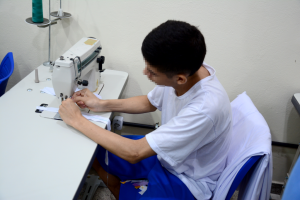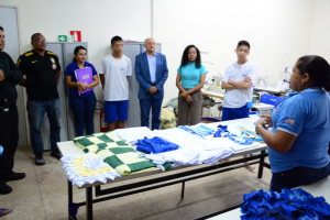 Dando continuidade nas aulas das Oficinas Escolas da FUNAC, o Centro Socioeducativo Sítio Nova Vida começou uma nova turma de Alfaiataria. Desta vez serão 12 adolescentes que participam das aulas práticas e teóricas, visando oportunizar a qualificação profissional na área de corte e costura. Em um ano de atuação da Oficina, o Centro Socioeducativo já formou 4 turmas de qualificação profissional e de acordo com a diretora do Centro Socioeducativo, Flávia Andrade, a seleção dos adolescentes acontece a partir de uma avaliação de aptidão de acordo com a declaração deles durante a elaboração do Plano Individual de Atendimento – PIA. “A Alfaitaria Escola é o nosso carro-chefe entre os cursos profissionalizantes ofertados por nós aos adolescentes neste Centro. Inicialmente alguns socioeducandos apresentam uma certa resistência, porque infelizmente lhe foi ensinado que costurar é coisa de mulher, mas, após terem maiores conhecimentos sobre a profissão, acabam desenvolvendo interesse ao ponto de idealizarem uma carreira profissional em busca de geração de renda”, afirma.
