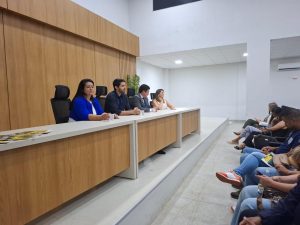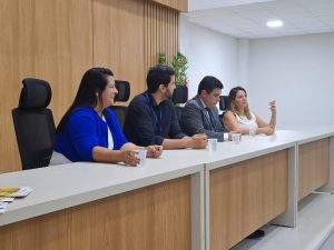 Para o evento, Sorimar Sabóia está acompanhada de membros da equipe de Gestão da Funac: a diretora técnica Lúcia Diniz (Dirtec/Funac); a coordenadora Regional de Programas Socioeducativos (CPSE/Funac), Eunice Fernandes; pelo chefe da Assessoria de Planejamento e Ações Estratégicas (Asplan/Funac), Nikson Daniel Souza; e pelo coordenador Geral Regional de Segurança, Stellius Pontes.