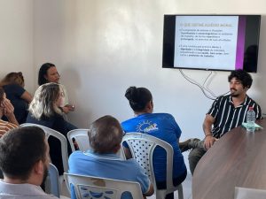 Após a explanação de Samira Nogueira, a ação prosseguiu com o psicólogo Lucas Moraes, da Coordenação de Programas Socioeducativos (CPSE/Funac), que enfocou temáticas psicológicas relacionados aos diversos tipos de assédio, enquanto o advogado Brenno Rodrigues, da Assessoria Jurídica da Funac, tratou sobre as bases legais sobre o tema.