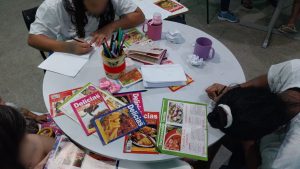 Em seguida, foi realizado um momento de leitura coletiva de receitas e histórias relacionadas ao tema alimentação.