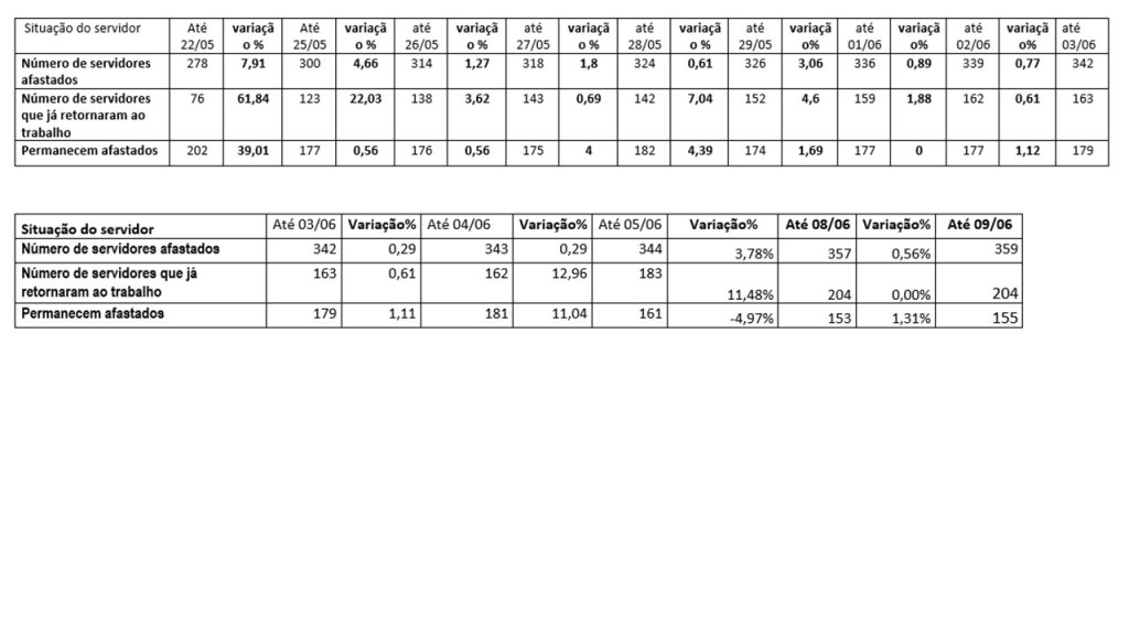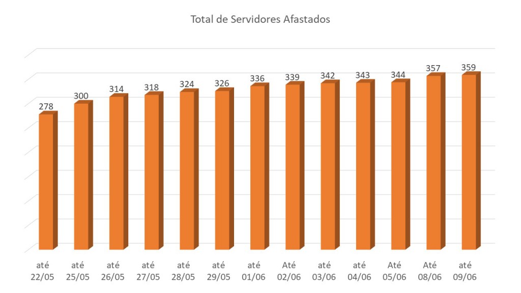 Comparando os dados dos dias anteriores identificamos que houve um aumento de 29,13% de servidores afastados em relação ao dia 22/05.