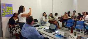 Em seguida, foi feita a exposição de conteúdo seguida da plenária (tira-dúvidas). Pela tarde, foi realizada a Oficina Prática, com orientações e trabalho em equipe e, após, Sistematização da Aprendizagem. A Formação de CAD foi encerrada com a dinâmica da Teia do Compromisso (checkout), quando é formado um Círculo de Práticas Restaurativas.